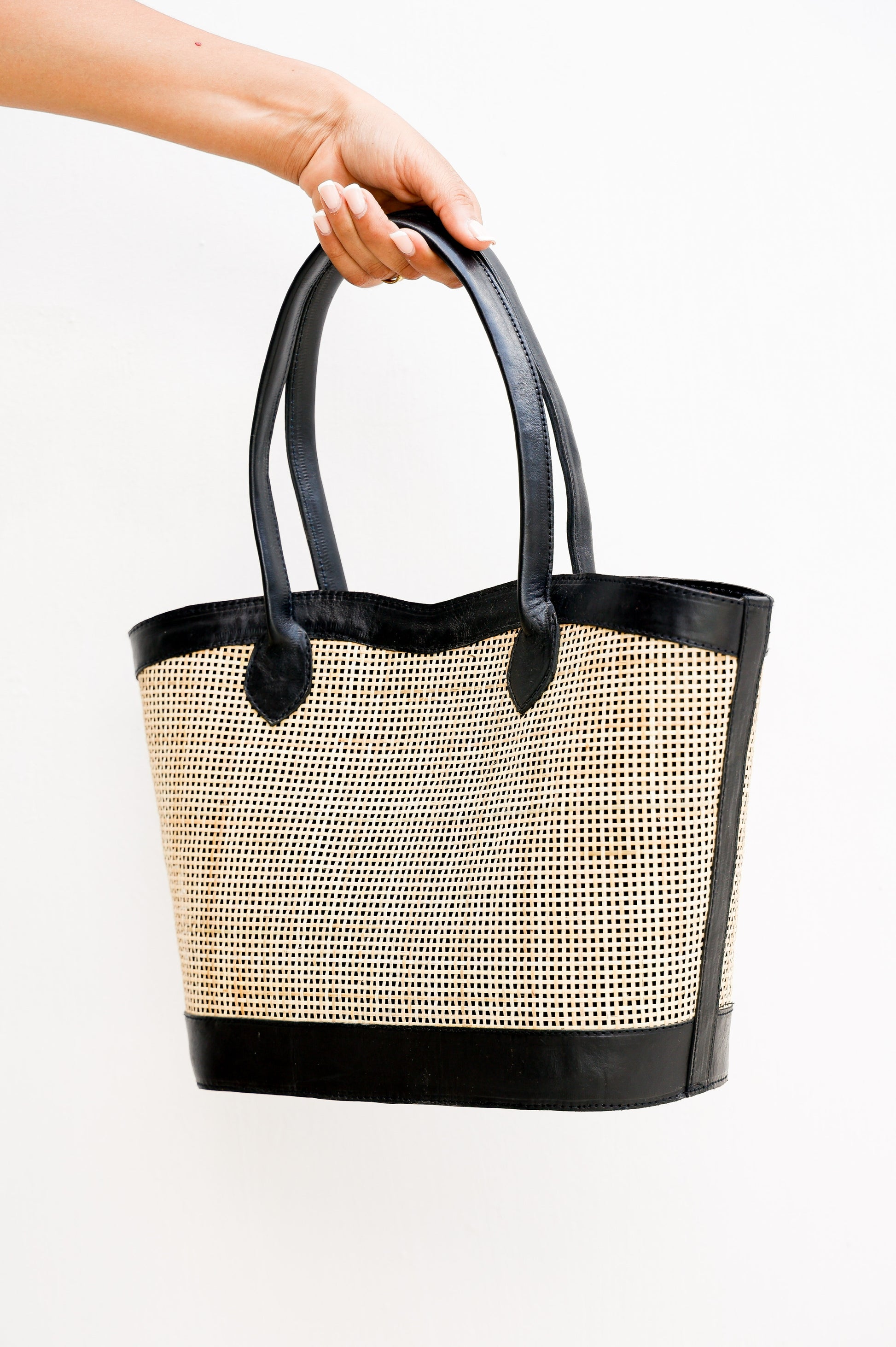 Timeless Tan Leather & Rattan Tote Bag – Handmade Summer Handbag
