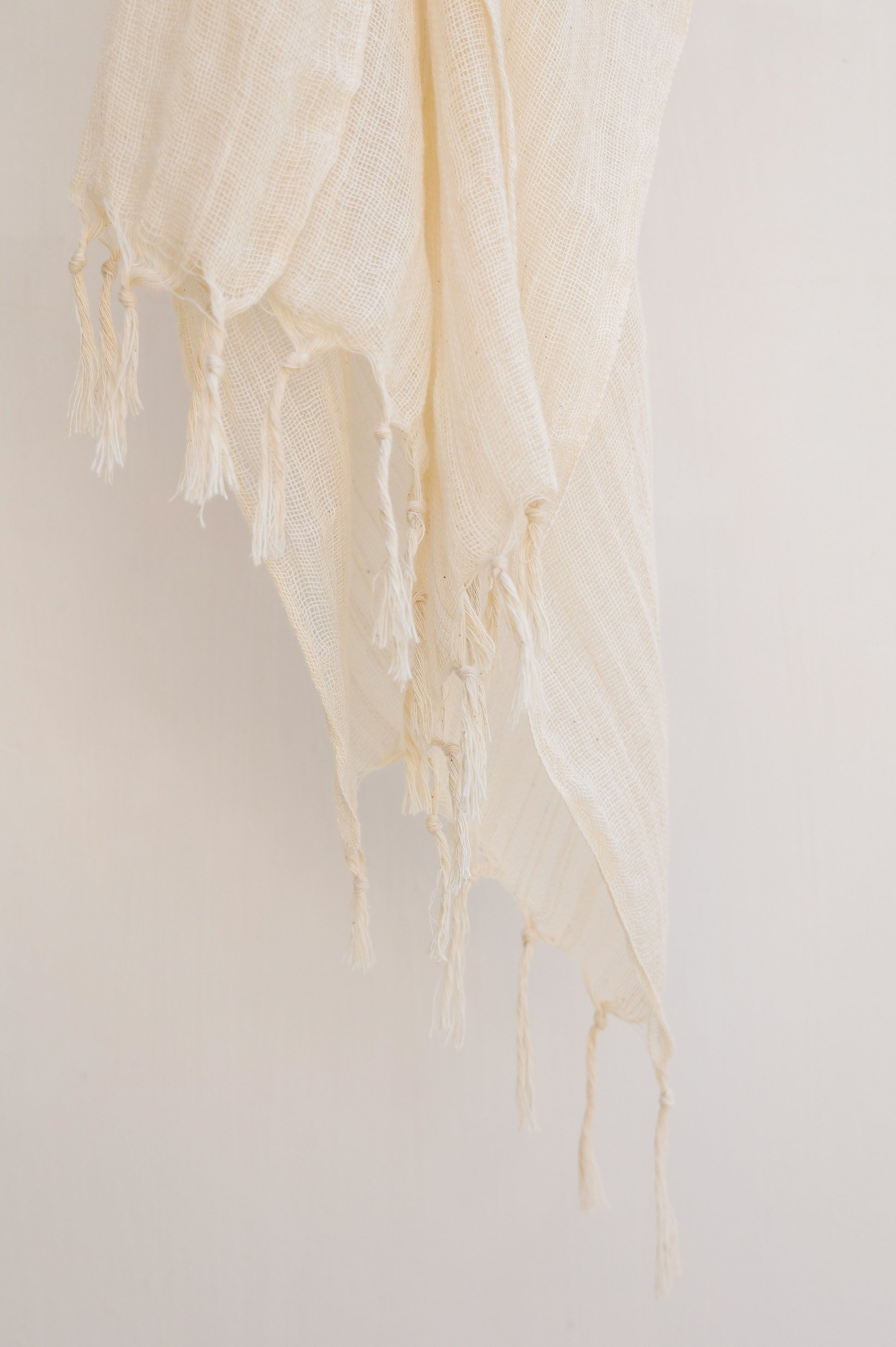 A timeless piece crafted from soft, breathable cotton. Its airy weave and delicate fringes make it the perfect layer for breezy summer days or cool evenings by the beach. Versatile, elegant, and effortless — wear it as a shawl, wrap, or beach cover-up.