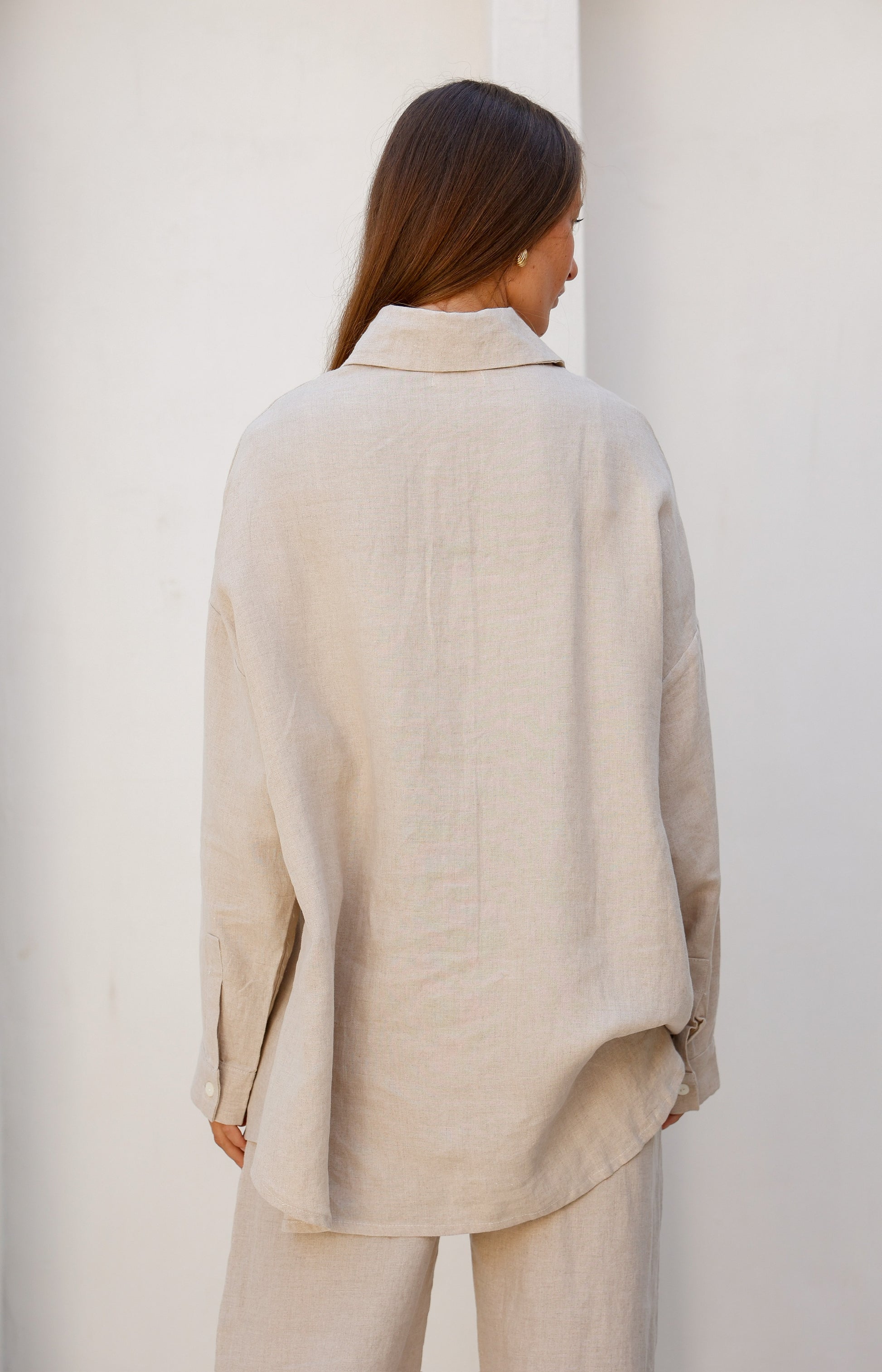 Wear it buttoned up for a timeless oversized silhouette, open over swimwear for beach days, or styled as a breezy summer dress. Its natural drape and breathable fabric make it ideal for warm weather, while the quality linen ensures durability and elegance season after season.